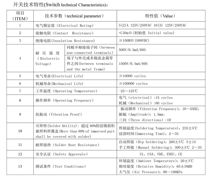 | 11 | Résistance thermique de soudure | Soudure par immersion : 260 ± 5 ℃ 5 ± 1S Soudure manuelle : 300 ± 5 ℃ 2 ~ 3S |