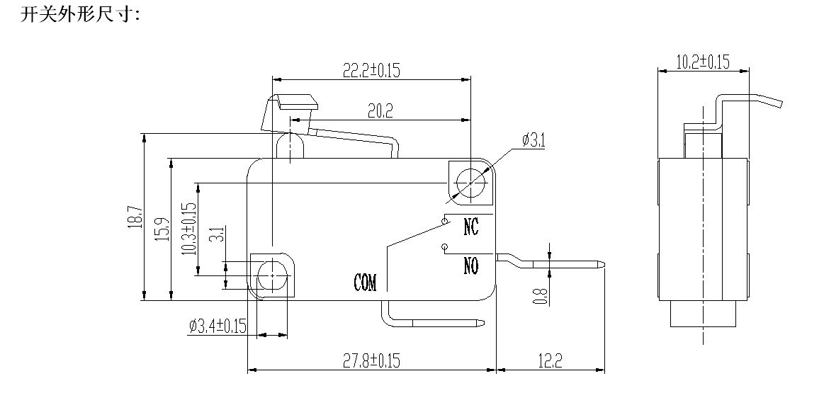 2. Belle apparence, contiguration serrée. Caractéristiques: petit dégagement de contact, action rapide, haute sensibilité et petit déplacement 3. de fonctionnement.